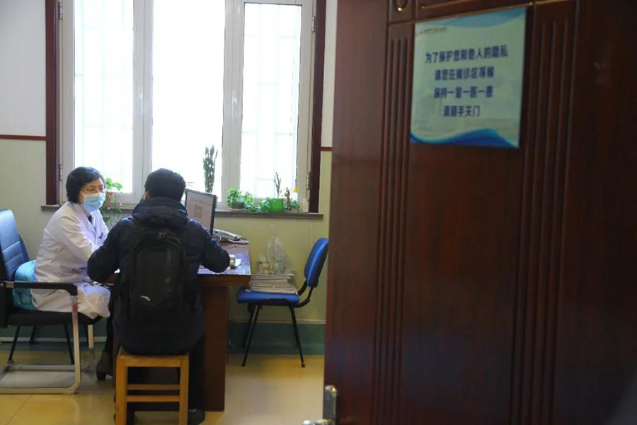 在中医科诊室外,10多名就诊群众戴着口罩,正在有序候诊。诊室里面,中医科负责人刘永秋正在为一名年轻人诊脉。问及近期接诊情况,她说到,“近期,前来就诊的慢性病患者增多,就诊人数已经达到正常时期的三分之二左右。”就诊的年轻人说:“这是我第二次过来,刘大夫开的中药很有效,终于能睡好觉了。医院防控措施到位,来这里看病很放心。”