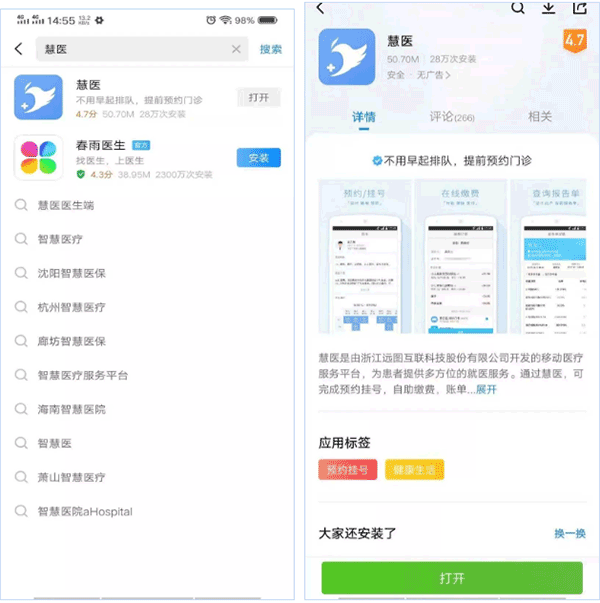 或者,在手机应用商店或浏览器搜索慧医APP下载并安装