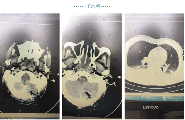 杨主任为患者输注血小板纠正血小板低下,行后颅窝开颅手术治疗,术后患者神志转清,但患者在呕吐时误吸窒息,出现呼吸衰竭、左心功能衰竭,两个脏器功能衰竭死亡率50%以上,加之患者系老年高龄,死亡率、抢救难度大大增加。转送ICU经护理的积极配合历经层层关隘,患者最终肺功能和心脏功能逐渐恢复正常。