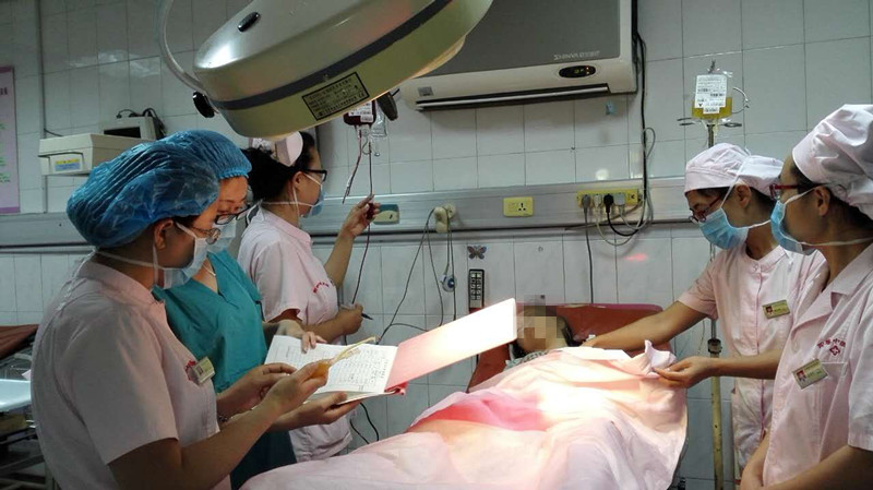 张秀芹主任及武明红主治医师上台,5分钟后手术结束,非常顺利,血止住了。COOK止血球囊放置宫腔,既解决了出血,又给患者保住了子宫,保证了产妇以后的生活质量。术后给予特级护理,心电监护。医护人员一直忙碌到凌晨,直到产妇生命体征平稳,转回产后病房。