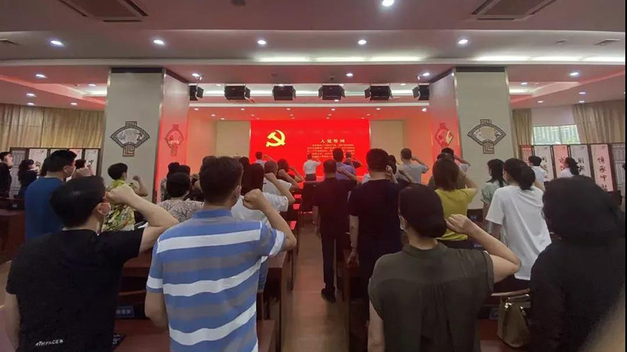 6月30日,即墨区中医医院党委组织开展“庆祝建党100周年专题党课”活动。授课结束后,全体党员在党旗下庄严宣誓。
